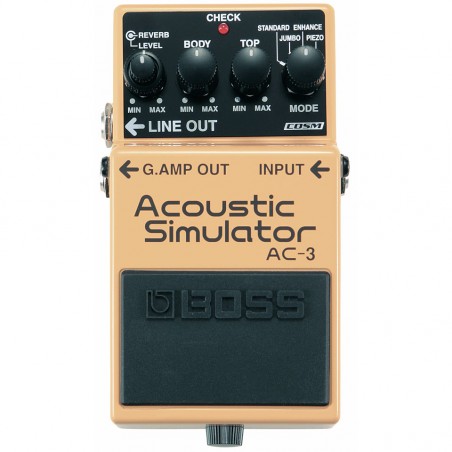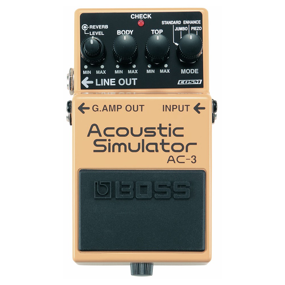 La tecnología de modelado acústico COSM de BOSS está bellamente presentada en este pedal pequeño pero potente, que simula una guitarra acústica de forma mucho más precisa y realista que lo que permitía la tecnología anterior. Derivado de BOSS top-of-the-line AD-8, el AC-3 simula el sonido de una guitarra acústica con una precisión increíble. Se proporcionan cuatro modos de simulación: Estándar, Jumbo, Mejorado y equipado con Piezo; este último proporciona ese famoso sonido piezoeléctrico directo "corte a través de la mezcla". Los pedales de modelado de guitarra acústica compactos anteriores eran prometedores, pero ahora la barra se ha elevado con AC-3.