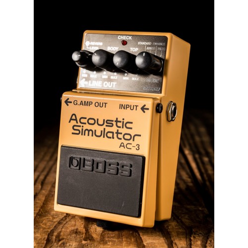 BOSS se complace en ofrecer otro pedal compacto "BOSS auténtico"; el AC-3. ¿Cuántas veces has estado en el escenario o en el estudio con tu guitarra eléctrica y deseaste llevar una acústica? Para los músicos que viajan ligeros, transportar una guitarra extra al concierto no siempre es la opción más atractiva. BOSS AC-3 al rescate! Este pedal compacto de nueva generación emplea la tecnología de modelado COSM para transformar cualquier guitarra eléctrica en una variedad de hermosas guitarras acústicas.