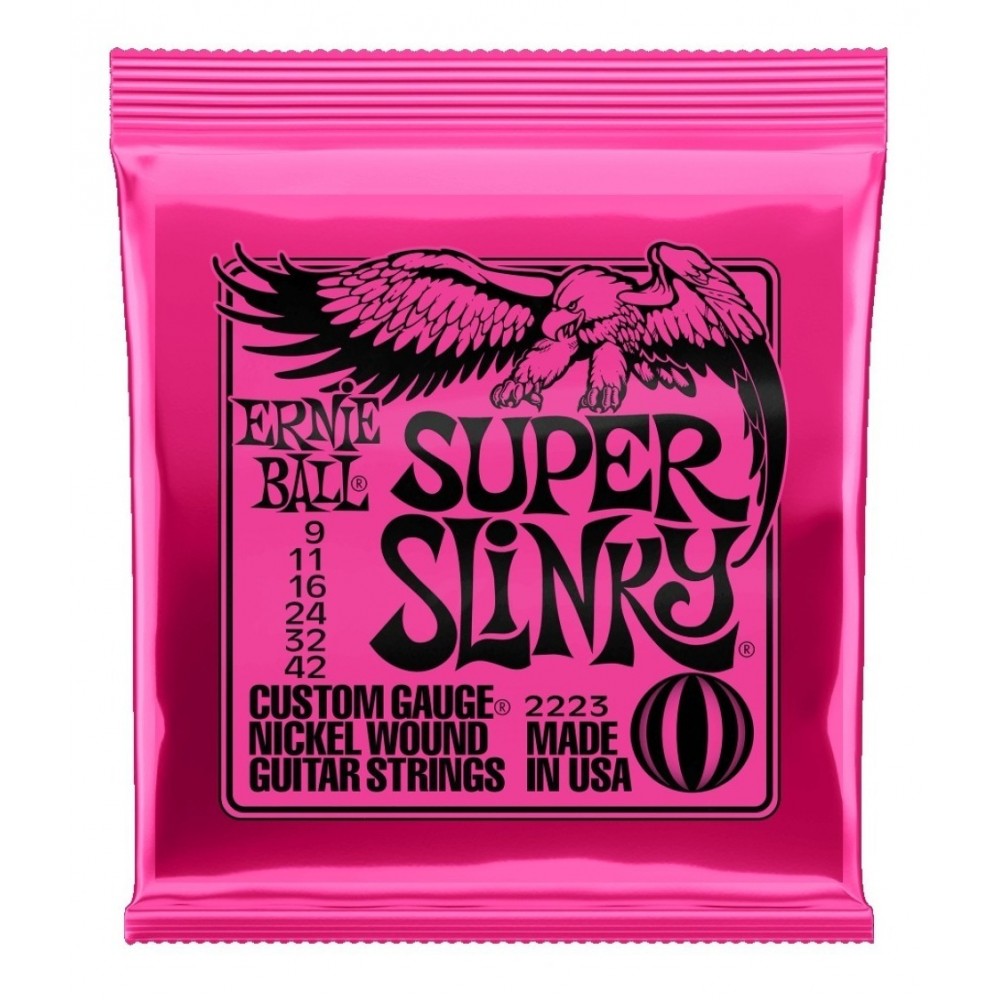 Las cuerdas Ernie Ball Super Slinky 09 (calibre 9-42) son las cuerdas de guitarra eléctrica más vendidas a nivel mundial, reconocidas por su tono nítido y equilibrado, gran flexibilidad y durabilidad.
