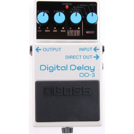El DD-3 es un potente pedal delay con tres modos diferentes. Un control Delay Time variable que crea delays de 12,5 ms a 800 ms, mientras que una función Hold es capaz de producir repeticiones de aquí al infinito.