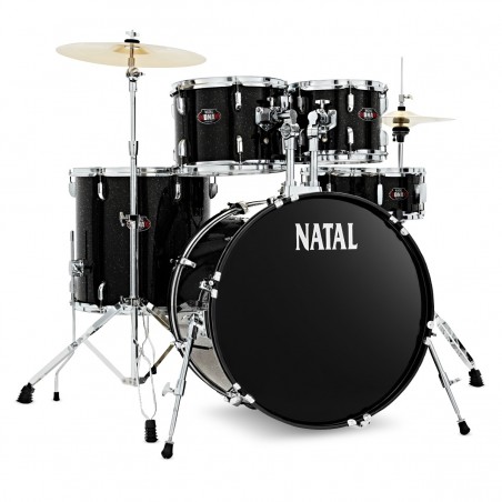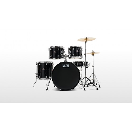 La batería NATAL DNA viene completa, con hardware, platillos, pedal para el bombo, butaca e incluso baquetas; todo lo que necesitas para tocar la batería directamente de la caja.