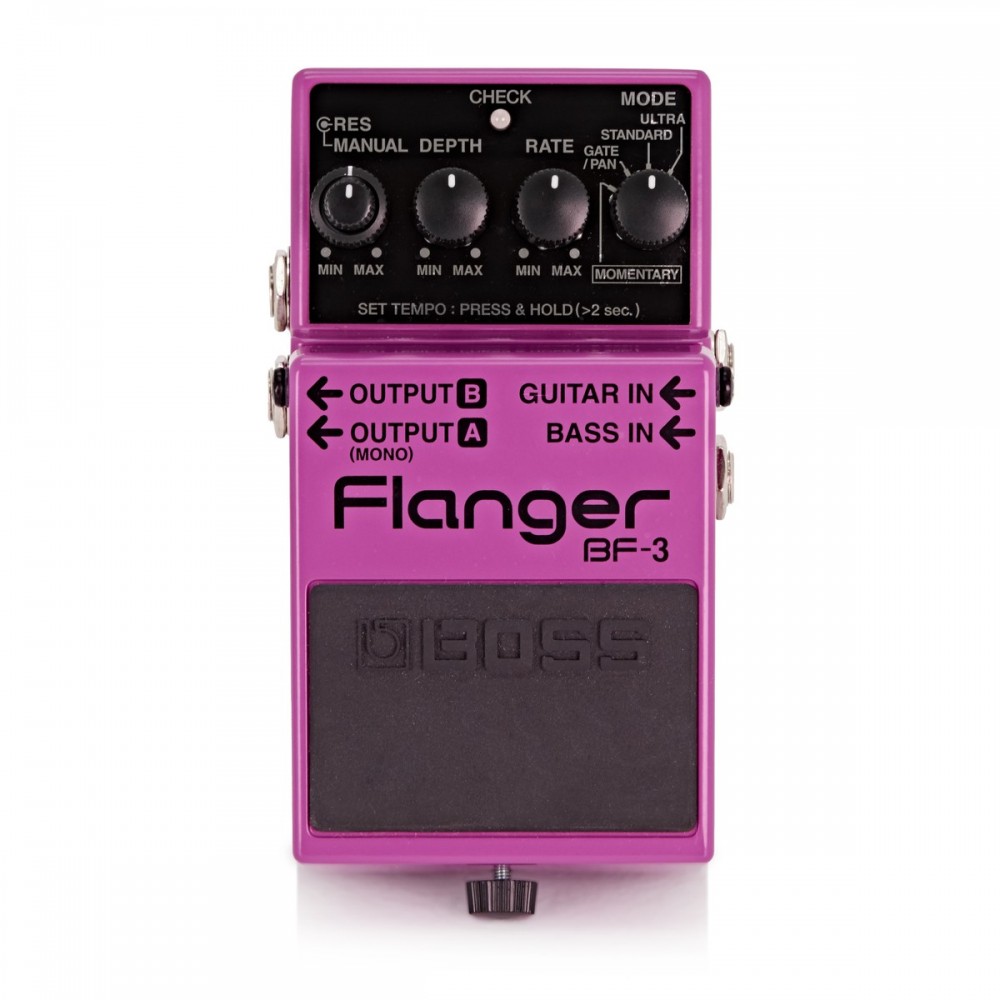 El Legendario Pedal Flanger ha Vuelto a Nacer! Construido en el legado de mas de 20 años del famoso BF-2, el nuevo BF-3 da a los guitarristas y bajistas la versión actualizada del clásico Flanger de BOSS con los sonidos de Flanger Estereo más gordos en la historia. Dos Nuevos modos “Ultra” y “Gate/Pan” crean efectos de Flanger con efectos de increíble profundidad Tipo “Slicer” y sonidos que parecen entrelazarse alrededor del usuario como lo haría un Tornado, es un huracán de efectos de sonido para el publico. Un Clásico Instantáneo.