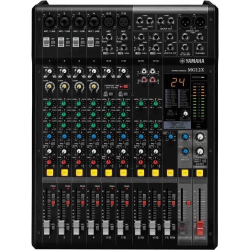 El Yamaha MG12X CV es un mezclador analógico de 12 canales con preamplificadores nítidos y una completa sección de efectos. Es perfecto para entornos y profesionales de la ingeniería de sonido que no necesitan conectividad USB para sus mesas de mezcla, y para configuraciones en que no se requiere un ordenador. Si necesitas un enrutamiento de audio flexible con una calidad prístina y la misma sección de efectos fantásticos que los venerables procesadores de efectos SPX de Yamaha, el MG12X CV es una forma eficaz de añadir estas características a tu configuración de mezcla.