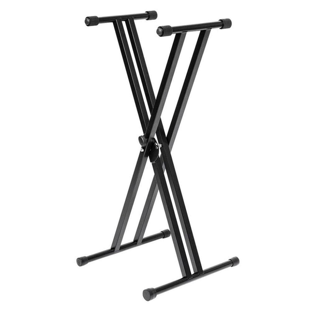 El Stagg KXS-A6 doble es un soporte de teclado estilo tijera con patas dobles y construcción metálica reforzada, diseñado para proporcionar estabilidad y durabilidad. Es un accesorio popular entre músicos por su buena relación calidad-precio.