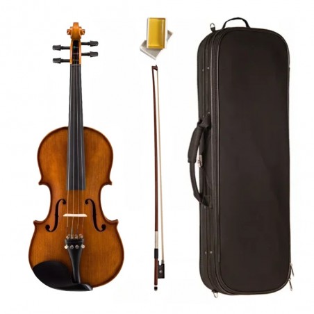 Accesorios Incluidos: El violín viene en un estuche rectangular semirrígido (algunos con higrómetro), e incluye un arco y resina.