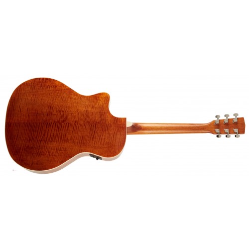 Brillante pero natural con un fuerte y cálido rango medio, el preciado arce flameado ha sido un símbolo único para el fondo y los lados de la acústica de alta calidad durante muchas décadas.